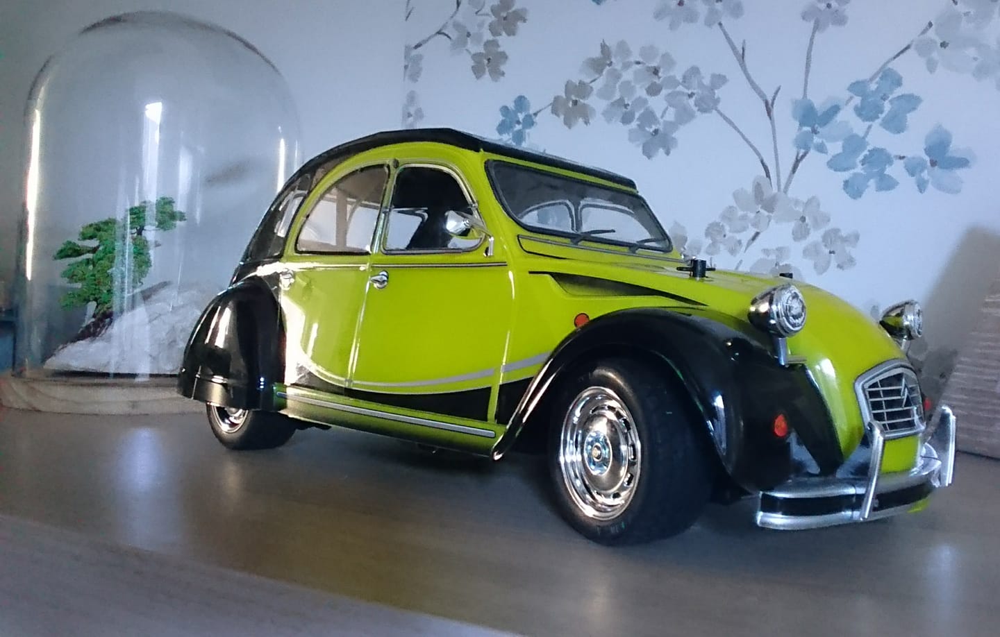 De Tamiya 1op10 RC Citroen 2CV Charleston, bouwdoos. In de volksmond de Eend.